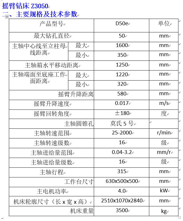 (一)项目名称:摇臂钻床采购