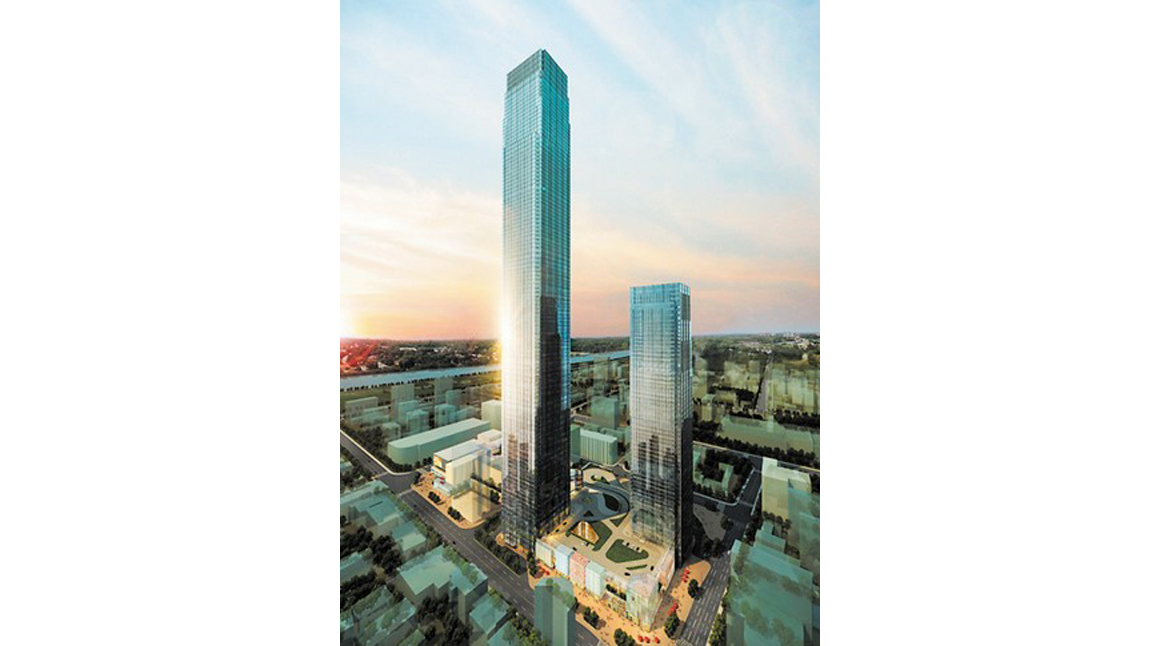 长沙国际金融中心主楼高452米,副楼高315米;地下为5层结构,负3层至负5层为停车场,配备2700个车位;1号塔楼(主楼)地上93层,2号塔楼(副楼)地上65层;占地7.44万平方米,总建筑面积达102万平方米。