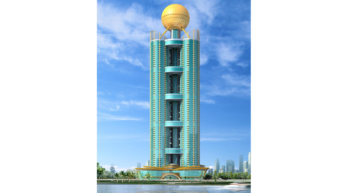 该工程塔楼部分由3个60层(高253.8米)的外围筒体和1个72层(高328米)的外围筒体构成,中央筒体顶部设有一个直径50米的球体。三个外围筒体的形心位于等边三角形的三个角点上,中央筒体位于等边三角形的形心上,整个建筑形似三根青竹托起一颗璀璨的明珠,寓意振奋向上的华西精神和节节高升的美好祝愿。