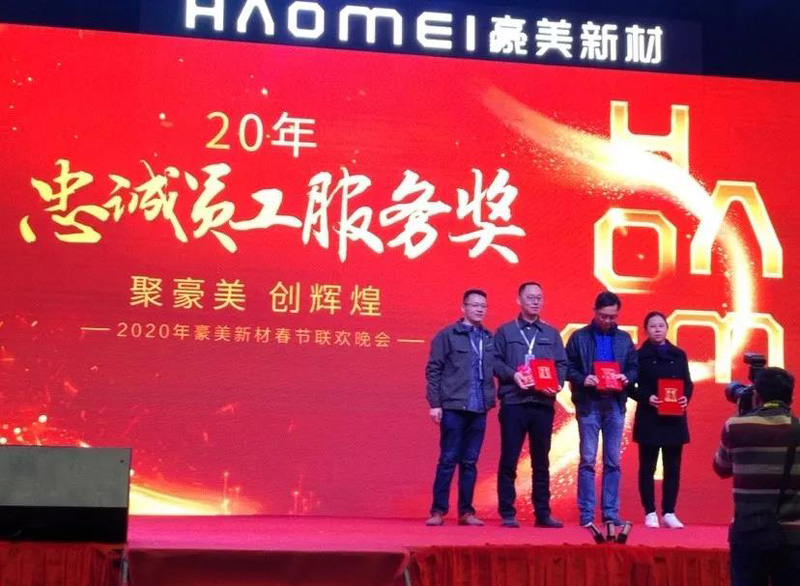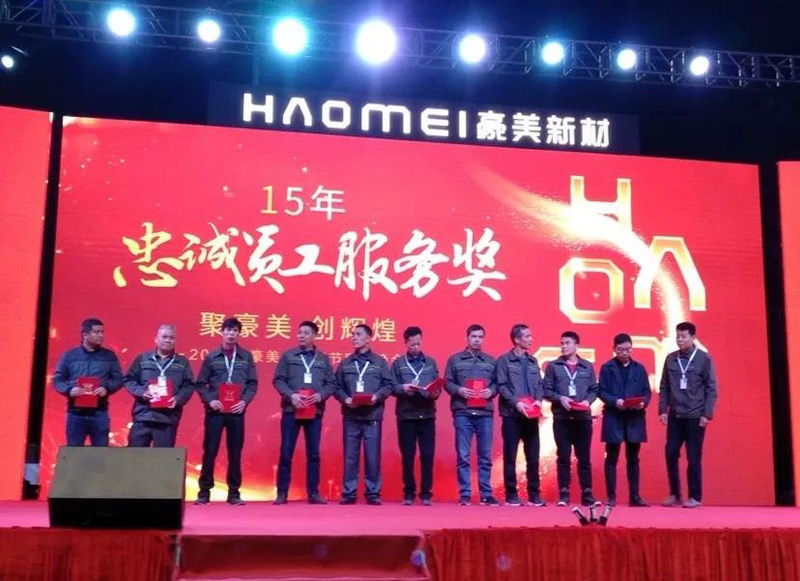 公司董事长董卫峰先生首先在晚会致辞中,回顾了豪美新材一年的奋斗历程,向长期关心和支持豪美新材的各界朋友,向长期为公司事业发展默默奉献的员工及其家人们致以崇高的敬意和由衷的感谢。希望每一位豪美人以更大担当和创新,不断奋进,以更大毅力坚定目标,超越自我,做好四个一心一意: