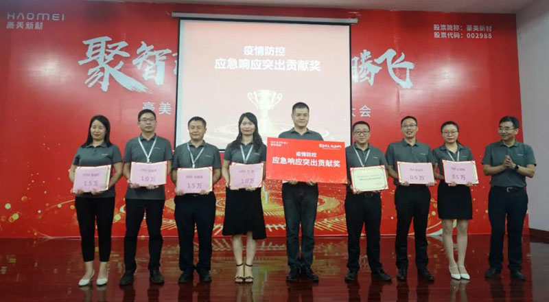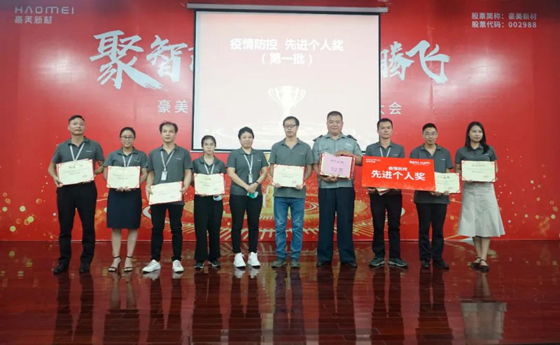 为了表彰豪美新材各部门、各经营单位在申报上市、生成经营、防疫防控、复工复产和抗洪抢险等各项工作中涌现出的先进人物和先进集体。7月15日,“聚智豪美,驭势腾飞——豪美新材2020半年度表彰大会”在公司会议中心隆重举行。豪美新材董事长董卫峰先生、公司领导和优秀员工代表欢聚一堂,共同回顾上半年的成功与收获,展望下半年的发展规划。